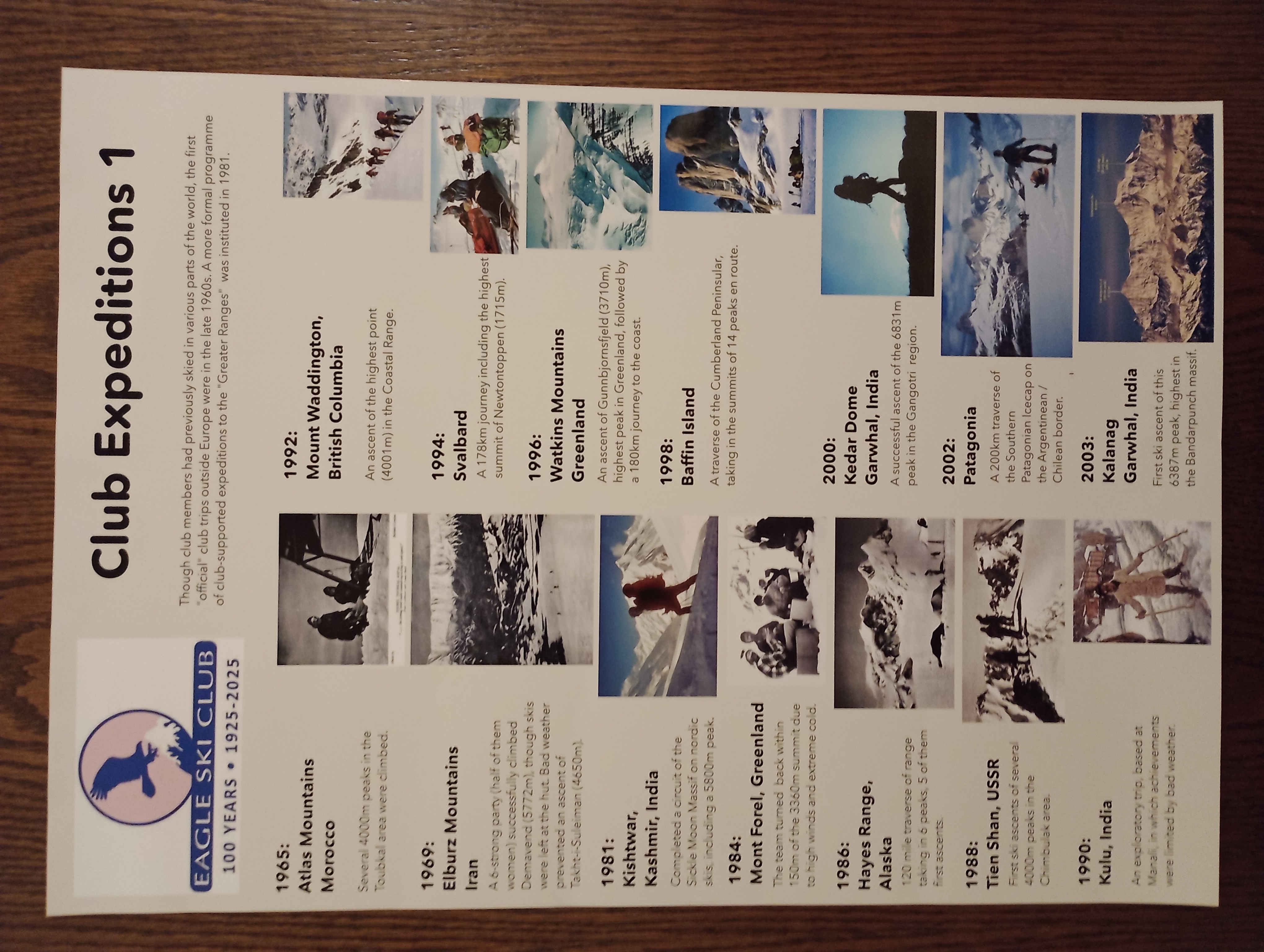 The centenary year started with the now-traditional Burns Night weekend meet at the Balavil Hotel at Kingussie in Scotland, organised as usual by Tim Winther. Despite the efforts of Storm Eowyn to prevent people getting there, more than 50 members arrived, along with enough snow allowing most to go touring on the Sunday. On the Saturday evening the haggis was piped in by Quint Glen, addressed by Angus Armstrong, and consumed by most of the rest. Many members contributed readings and songs during the meal, posters highlighting the club's early history were displayed, as were a collection of photographs and ski equipment of various degrees of antiquity. There is a full report on pages 6-8 of the 2025 Yearbook.