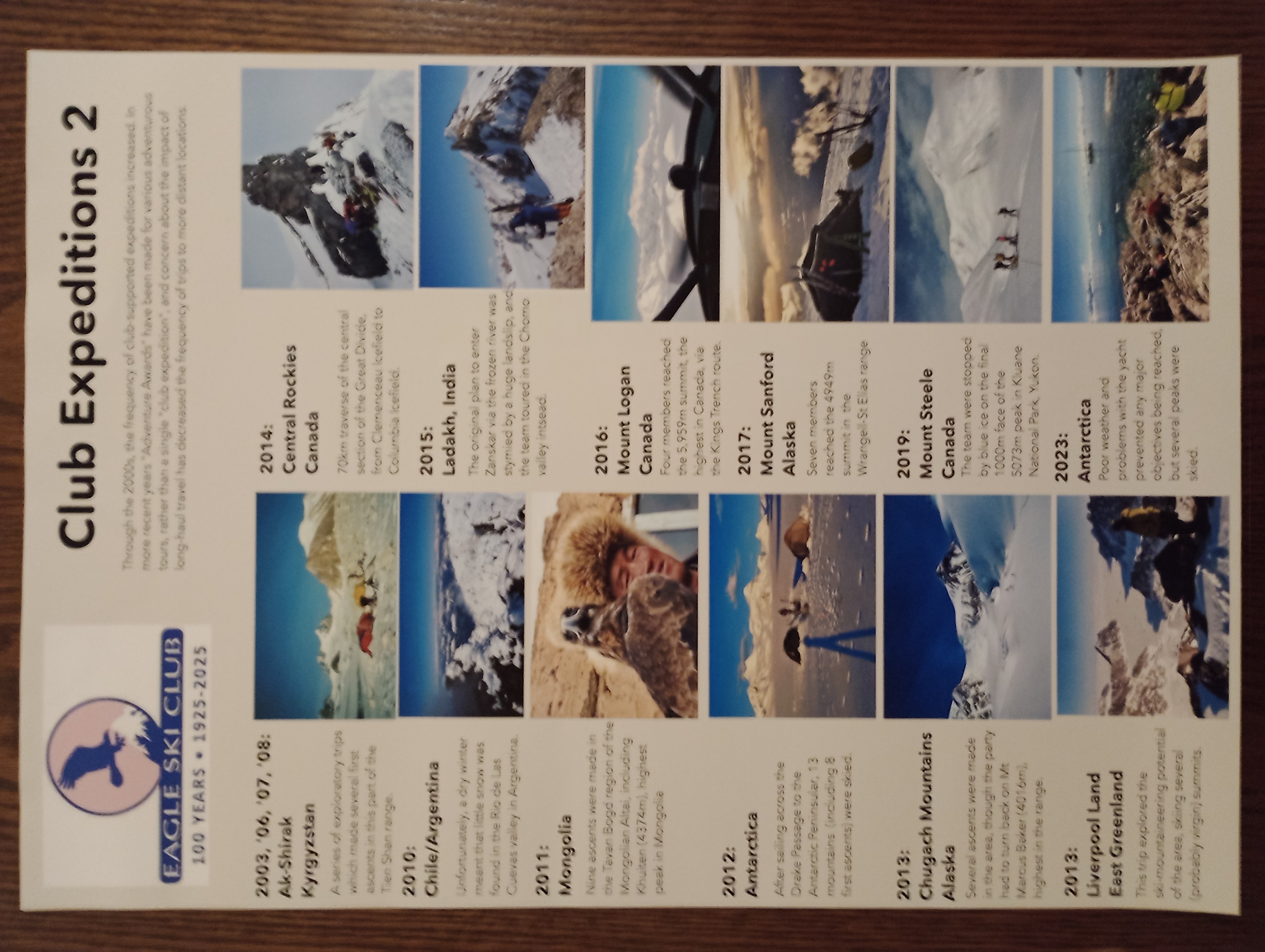 A special commemorative book was distributed to members in October 2025, along with a centenary edition of the Yearbook. It contains reprints of selected reportsand articles from Yearbooks over the past hundred years, along with specially-commissoned writing on the history of the club, the development of ski-touring over the past century, and prospects for the future. The editorial team has been led by Pete Boyd, assisted by John Barnard and Stephen Goodwin.