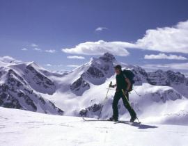 10 day self supported "free heel" tour from Conrad Cain Hut in the Bugaboos (British Columbia) to Rogers Pass - hitched a cheap ride with a CMH heli-ski chopper to start the tour