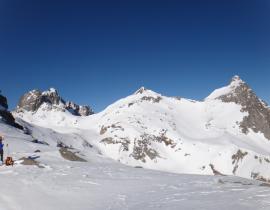Skinning up the Barranco Rioumayeu with Punta Alta in the background.